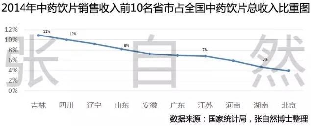 吉林、四川、遼寧三省的中藥飲片銷售收入占了全國的近三位之一。