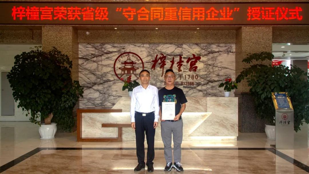 梓橦宮榮獲“省級守合同重信用企業(yè)”稱號!