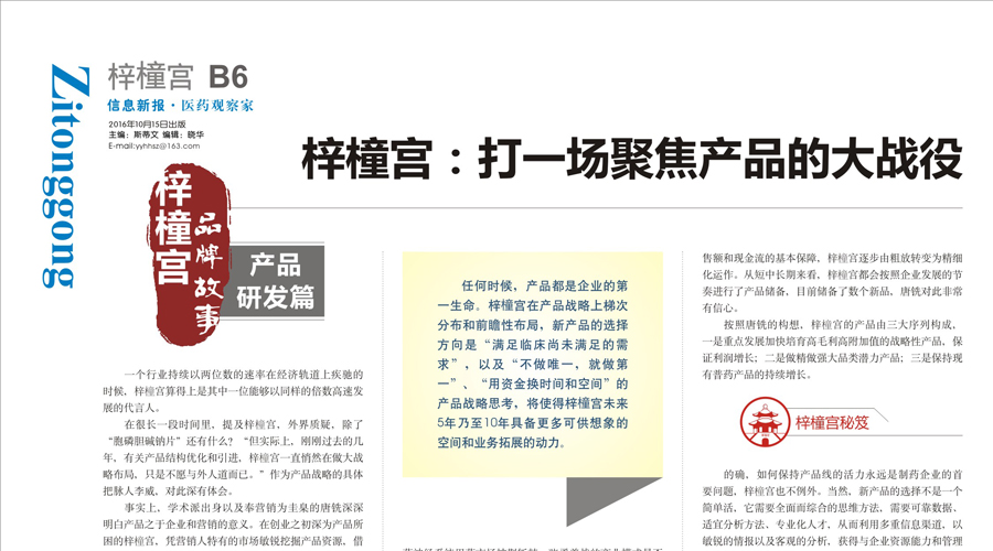 《醫(yī)藥觀察家報》梓橦宮藥業(yè)品牌系列報道——梓橦宮:打一場聚焦產品的大戰(zhàn)役
